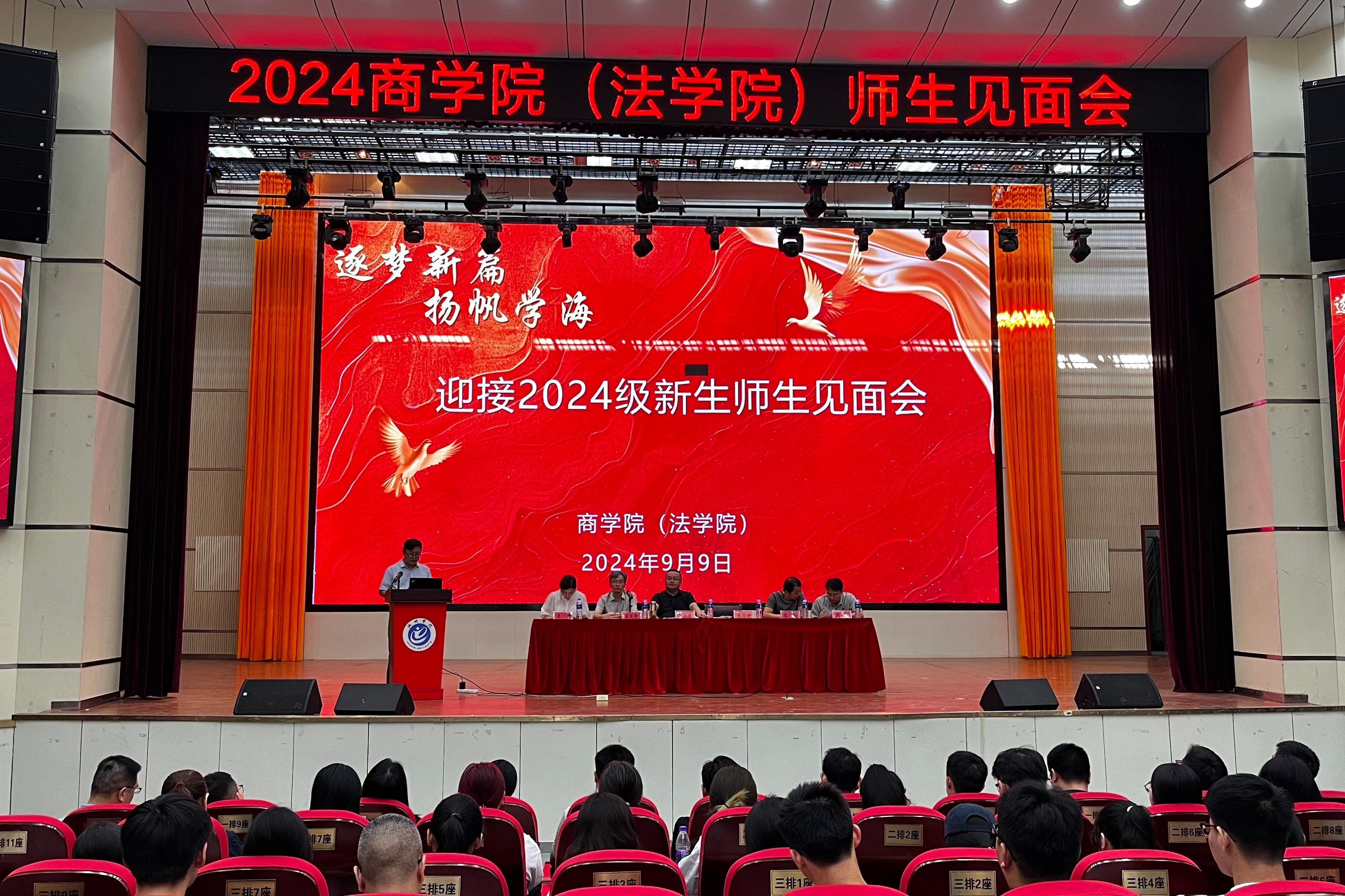9月9日上午,6165cc金沙总站检测中心(法学院)2024级师生见面会在博古礼堂成功举行。学院党委书记肖宁生、院长吴自爱、副院长吴义根出席会议。会议由吴义根主持。