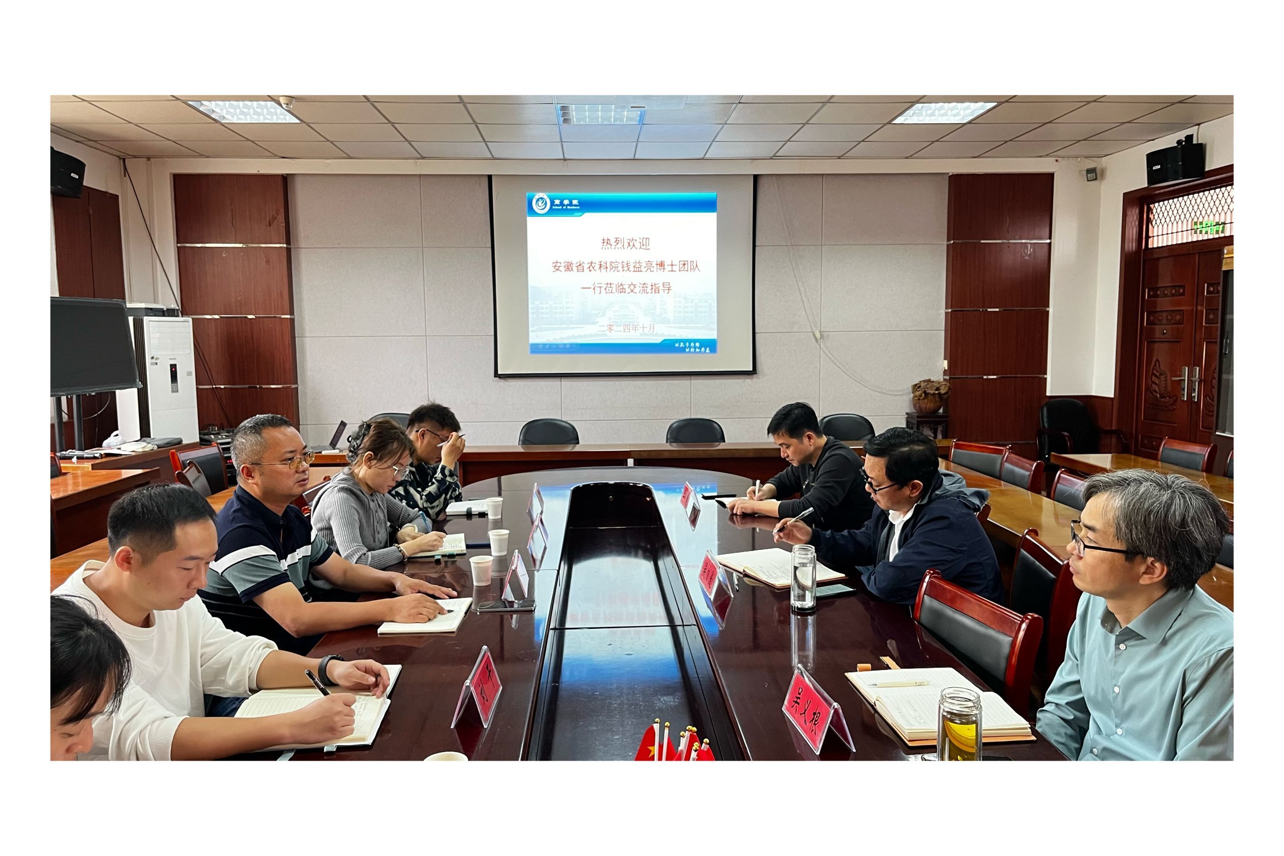 10月12日上午,安徽省农业科学院作物研究所钱益亮博士团队及黄山壹贰叁农科文化创意有限公司一行6人来6165cc金沙总站检测中心(法学院)考察交流产学研平台建设及农科产品全渠道零售合作建设发展情况。