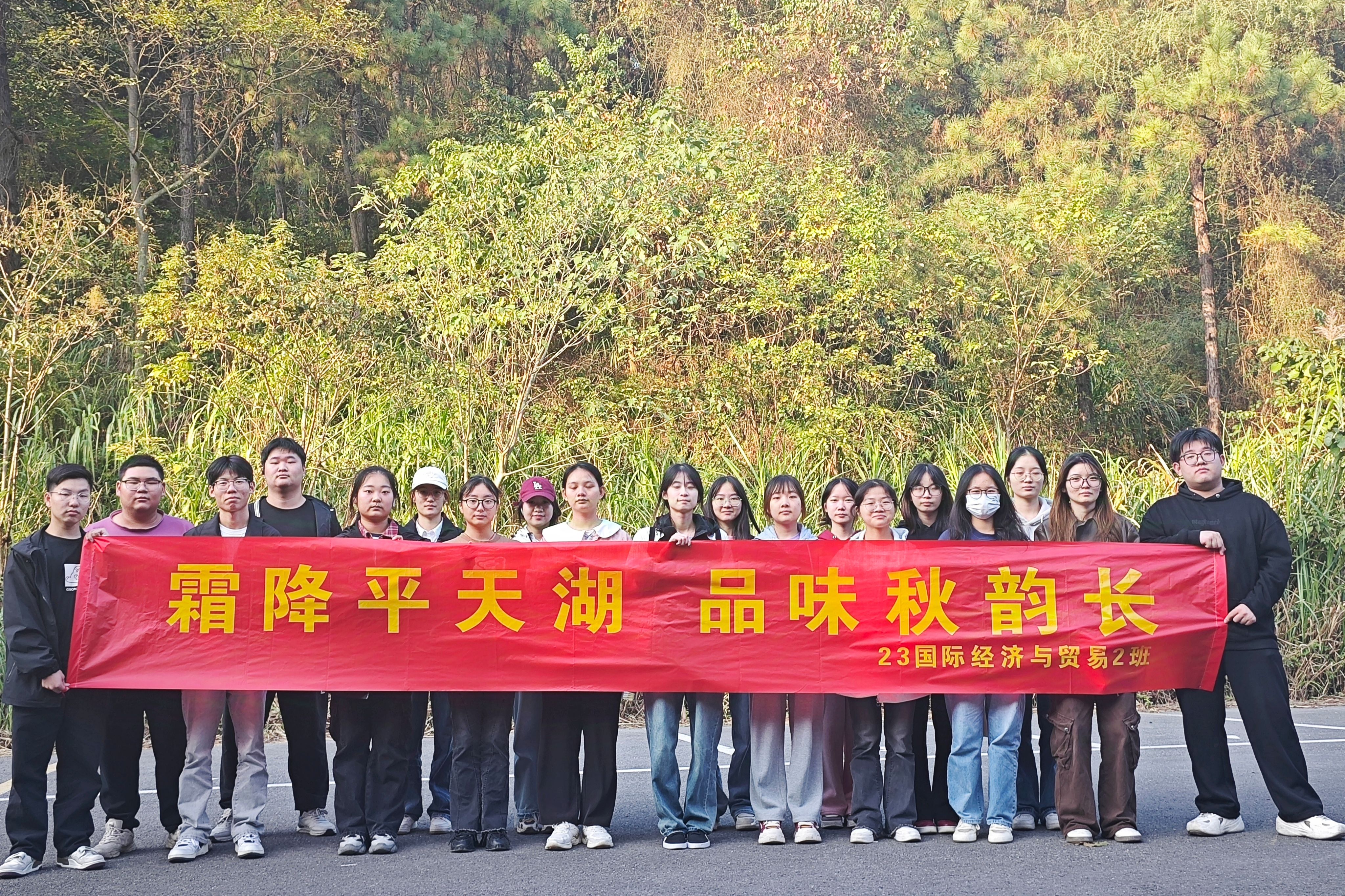 为积极响应党的二十届三中全会《决定》中关于深化生态文明体制改革的重要指示精神,以此为教育契机,传承中华优秀传统文化,夯实班风建设,2024年10月23日,6165cc金沙总站检测中心(法学院)23国际经济与贸易2班在平天湖风景区开展“霜降平天湖,品味秋韵长”主题教育活动。