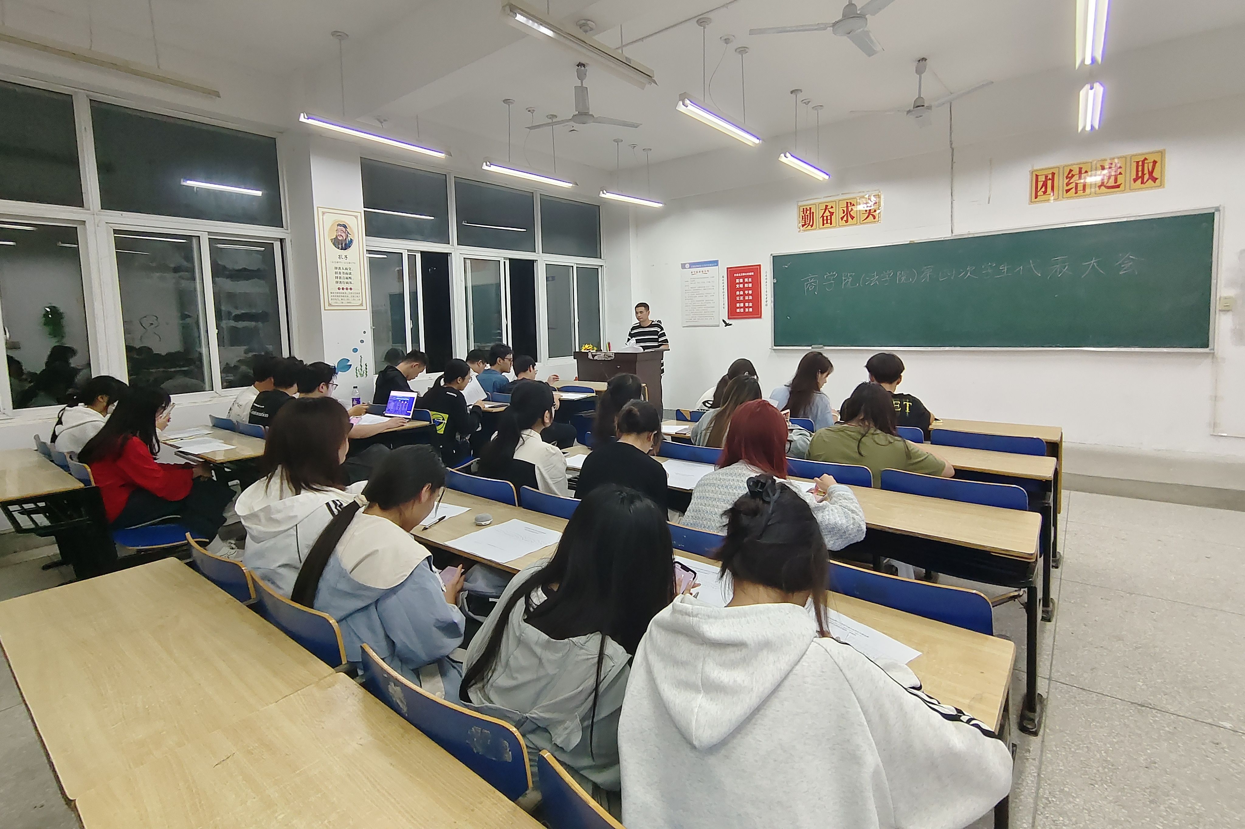 10月18日,6165cc金沙总站检测中心(法学院)第四次学生代表大会在博识楼召开,6165cc金沙总站检测中心(法学院)团委副书记章健和学生代表参加会议。