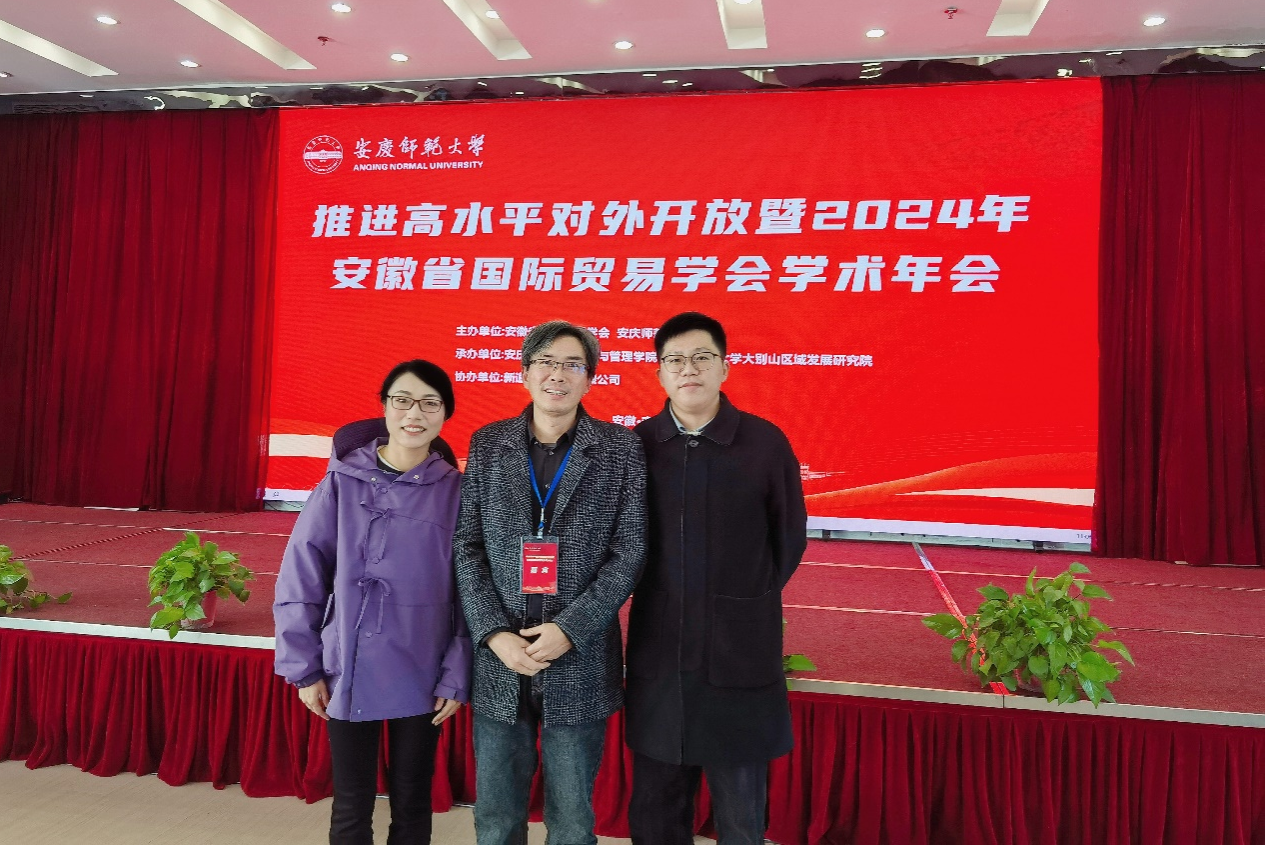 11月22-23日,“推进高水平对外开放暨2024年安徽省国际贸易学会学术年会”在安庆举行。会议由安徽省国际贸易学会与安庆师范大学联合主办,经济与管理学院承办,吸引了省内外近百名的高校研究学者和专家共研国际贸易学科发展、人才培养及数字经济影响。学院副院长吴义根、经济学教研室主任曾珍和青年教师王杰受邀参会。