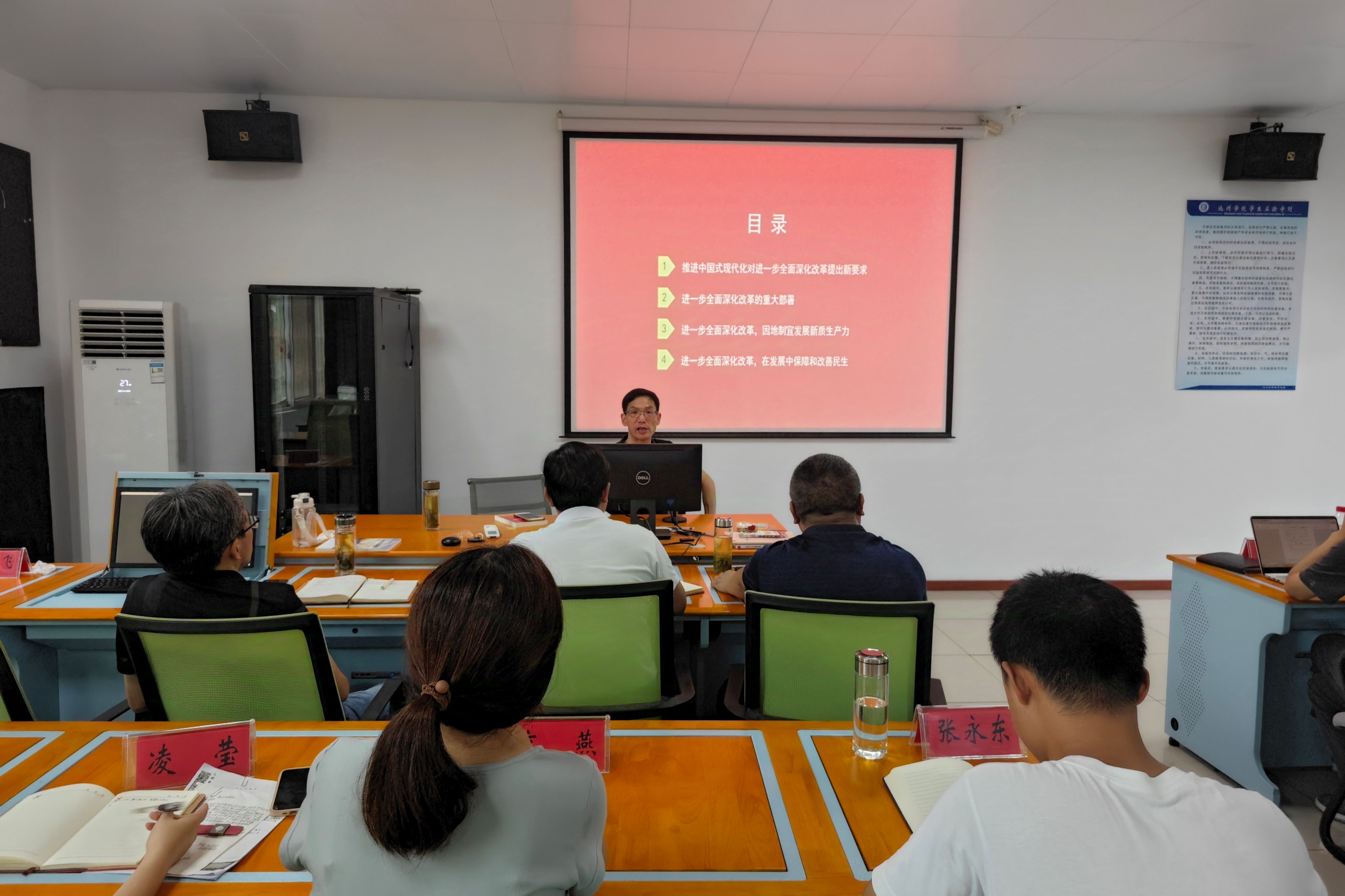 9月11日,6165cc金沙总站检测中心(法学院)在博识楼北303召开学习贯彻党的二十届三中全会精神专题会议。学院党委书记肖宁生主持会议。马克思主义学院副院长鲍红信作题为“进一步全面深化改革 为中国式现代化注入新动能——深入学习领会党的二十届三中全会精神”的宣讲。6165cc金沙总站检测中心(法学院)全体教职工参加会议。