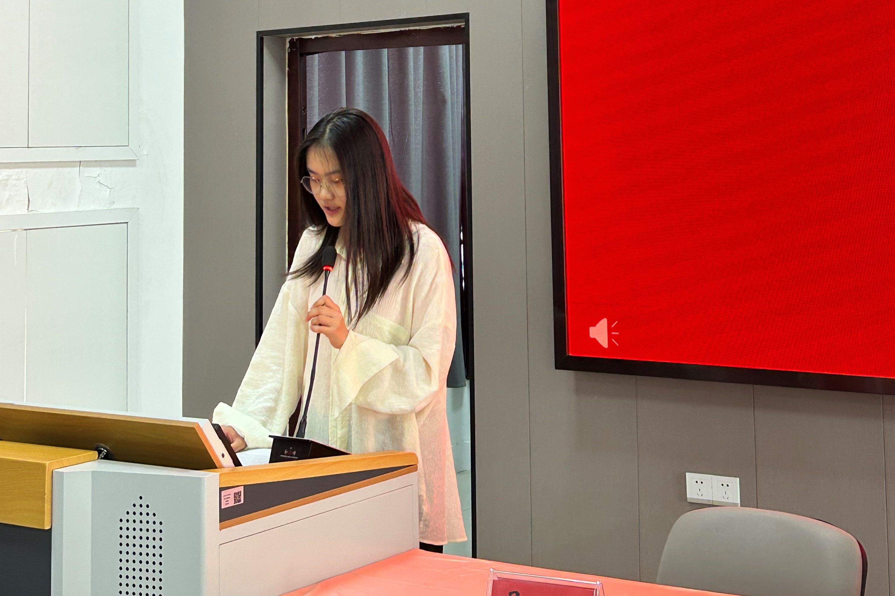 24审计2班汤婷同学作为培训学员代表上台发言。她分享了自己对入党的深刻感悟,并代表全体入党积极分子郑重承诺,将以饱满的热情和严谨的态度投入到培训学习中,努力做到学有所思、学有所悟、学有所得,以实际行动向党组织靠拢。